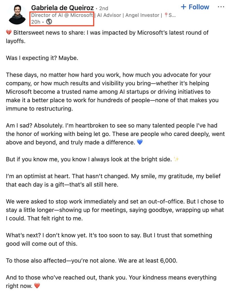 In today’s climate, a LinkedIn badge that says “18 years at Microsoft” is not protection—it’s a target for cost-cutting algorithms.