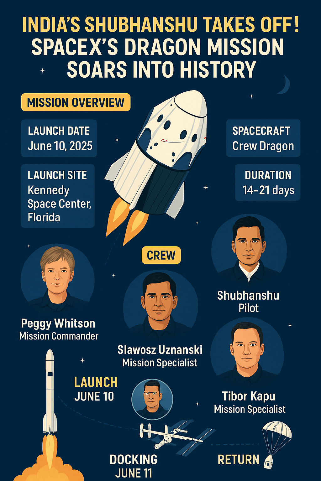 | Shubhanshu Shukla | India | Pilot – First Indian on the ISS |