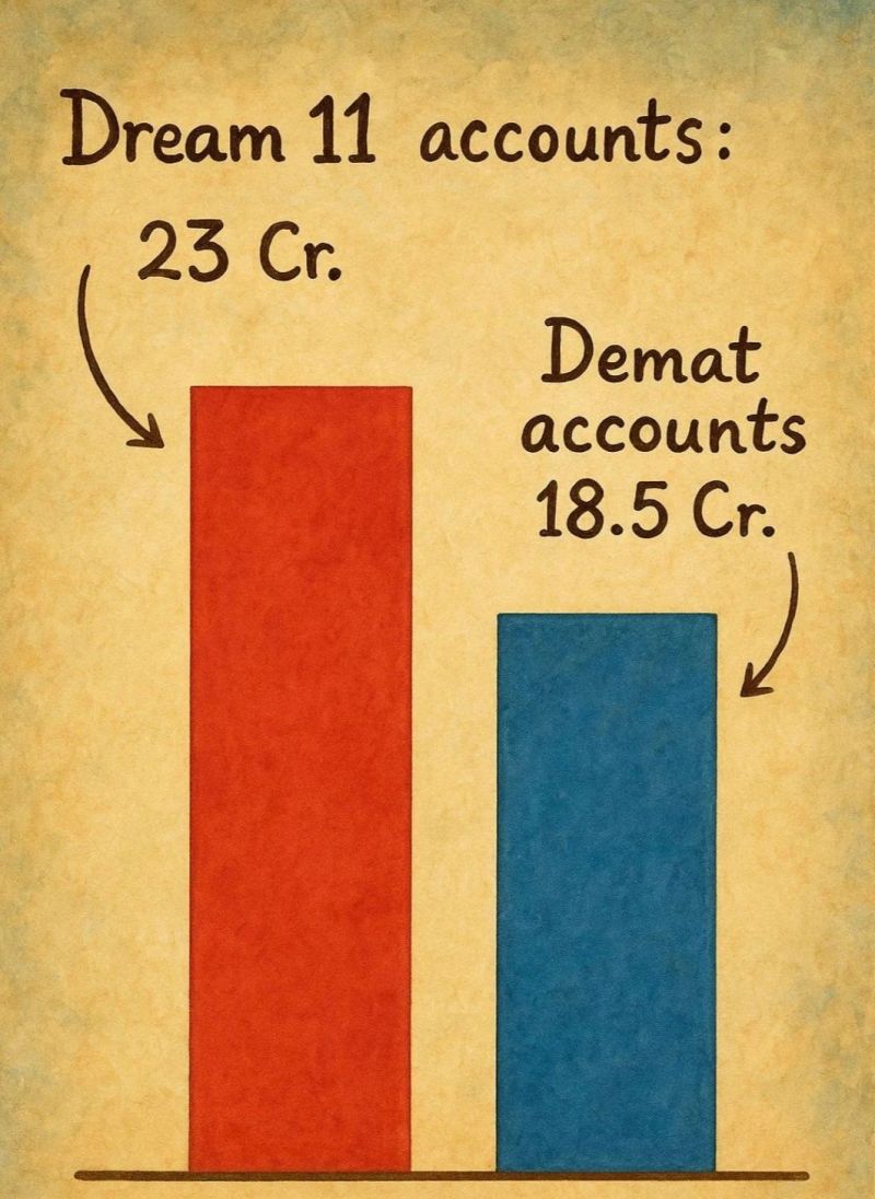 👉 Dream11 has 23 crore users, while India has only 18.5 crore Demat accounts.