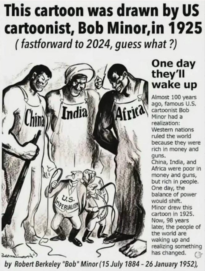 Bob Minor’s cartoon was revolutionary. It challenged the dominant narrative of Western superiority and whispered a quiet warning: numbers matter. Talent matters. Culture matters. And most of all—awakening matters.